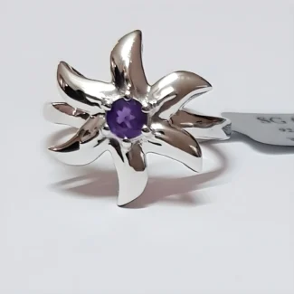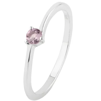Minimalist Sterling Silver Solitaire Ring with Round Pink Amethyst