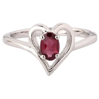 White Gold Chevron Ring with Round Garnet Solitaire