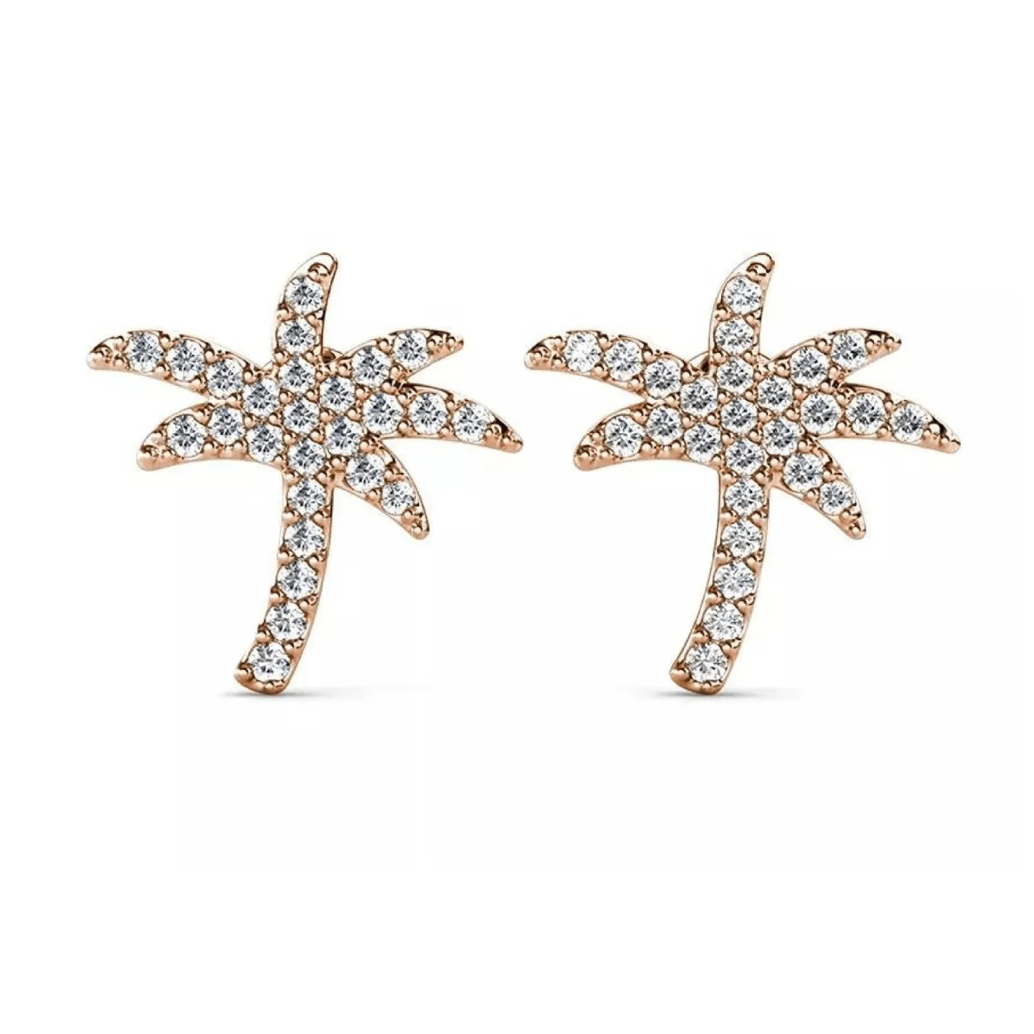 Add a touch of paradise to your jewelry collection. These detailed palm tree studs are completely encrusted with sparkling cubic zirconia stones, set in a warm and feminine rose gold-tone finish.