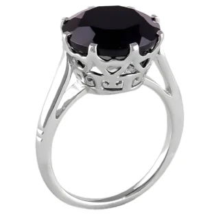Sterling Silver Solitaire Ring with Emerald-Cut Black Spinel